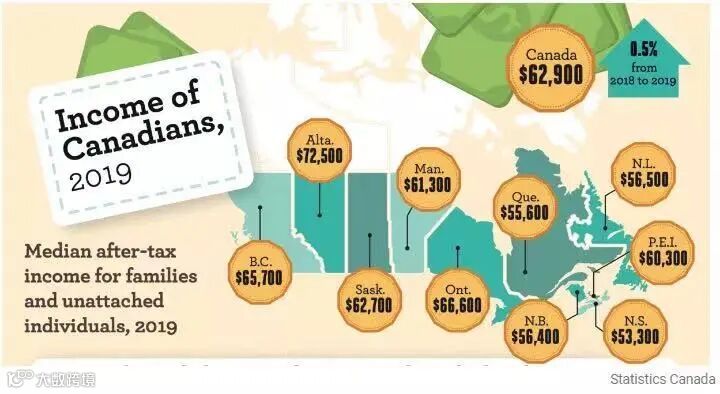 根据加拿大统计局的收入调查显示,不同省份之间的中位数年收入,最大差别高达$20,000加币!
