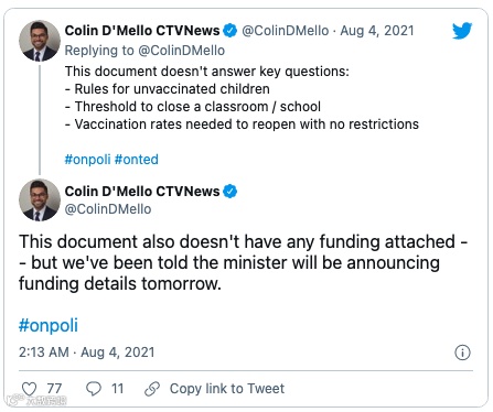 发布的指南并未为家长提供一些关键问题的答案,例如学校将如何应对COVID-19疫情或是否会对接种疫苗的儿童有不同的规定。