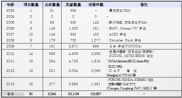 该项目于2003年开始,至今已在多个国家(包括发达国家及发展中国家)举办过多次活动,合作的大型生产制造企业已经超过2000多家。根据KOTRA的不完全统计,仅在汽车产业领域, Global Partnering在全球就取得了重大的合作成果