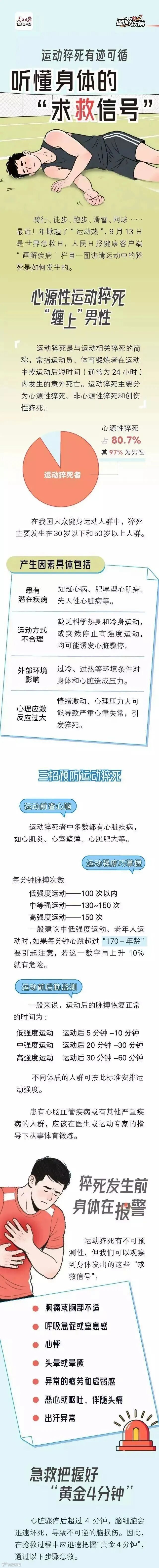 致海外服骑行、徒步、跑步、滑雪、网球……最近几年掀起了“运动热”, 9月13日是世界急救日,人民日报健康客户端“画解疾病”栏目一图讲清运动中的猝死是如何发生的。