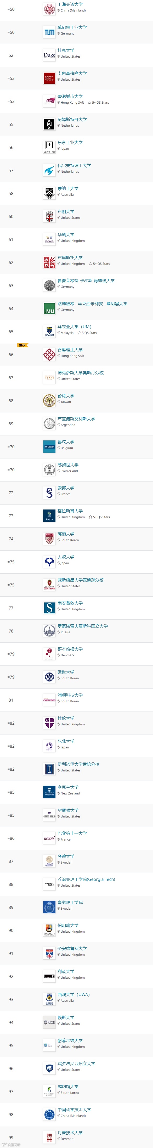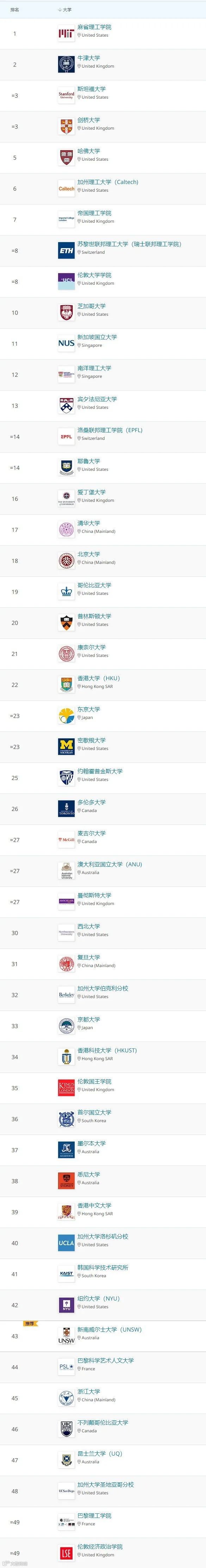 QS前100是一个门槛。对于某些留学生来说,自己的梦校不掉出QS前100就是赢!所以我们来看前100排名!