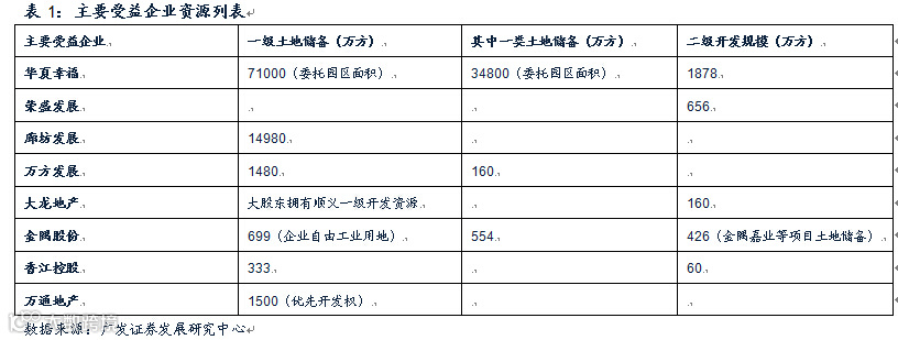 “京津冀”主题收益标的众多,通过房地产的逻辑来进行分析,目前拥有地价土地储备的企业,将会收益与资源价值的提升。我们对于上市房企,以及上市的非房地产企业资源进行了一个简单的梳理,罗列了土地所处位置以及规模,根据土地所处的位置和区域进行了价值评估。从评估结果来看,我们首推的标的为华夏幸福、荣盛发展、廊坊发展、万方发展、香江控股和金隅股份等。