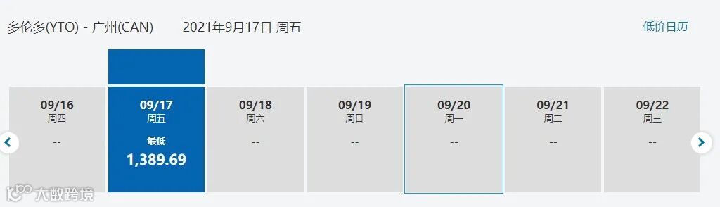 不过,对于一些打算趁这个时间回国的朋友们,机票价格相对来说就比较合理了。9月17日多伦多-广州单程直飞票价为$1389.69美元,约$1740.64加元,约8968.36人民币。