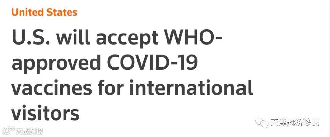 国旅客的航空入境限制,如果接种完两剂新冠疫苗,就可以进入美国,不过当时美国并未具体公布哪些疫苗是被允许的。