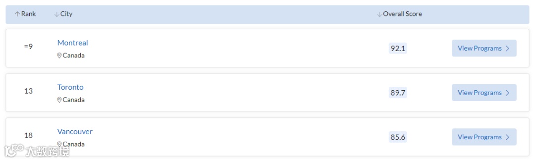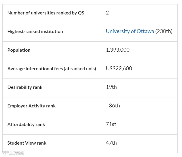 尽管此次渥太华的排名有所下降,但是在就业机会(全球第86名)和吸引力(全球第17名)方面的排名却有所提高,不过相较于前3名还有一定的差距,尤其是就业机会落后较多。