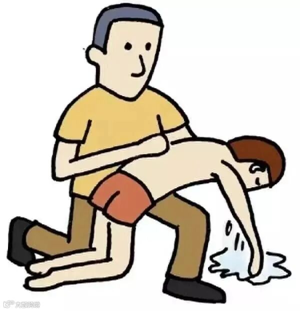 将溺水者救至岸上后,应迅速检查溺水者的身体情况,并立即清除口鼻内淤泥杂草和呕吐物,然后再进行控水处理。最简便的方法是:救护者一腿跪地,另一腿出膝,将溺水者的腹部放在救护者的膝盖上,使其头下垂,然后再按压其腹背部。