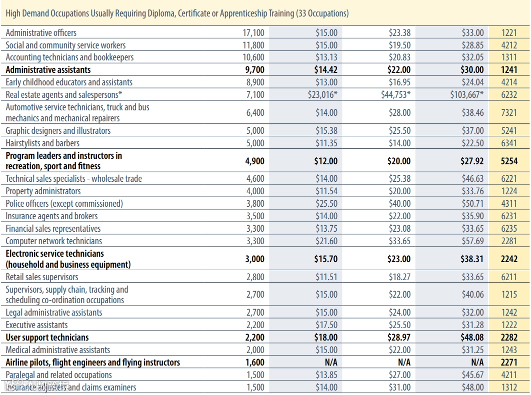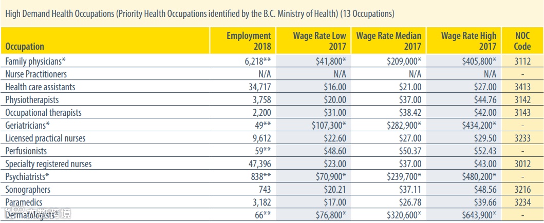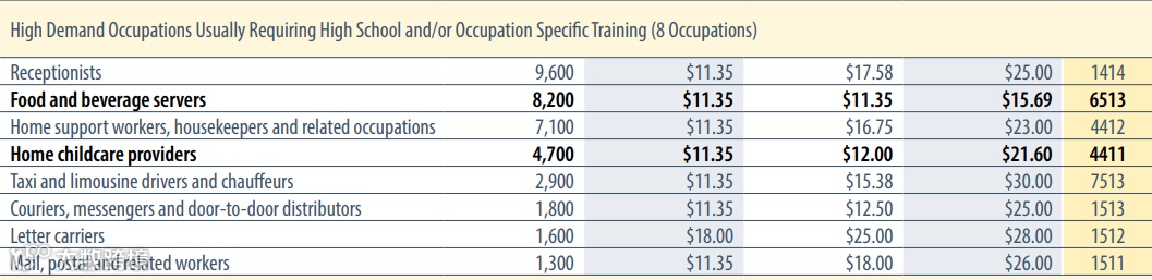 《BC LABOUR MARKET OUTLOOK》整理了目前BC省前100个最紧缺的就业岗位,包括咱们非常熟悉的一些新移民常见职业。