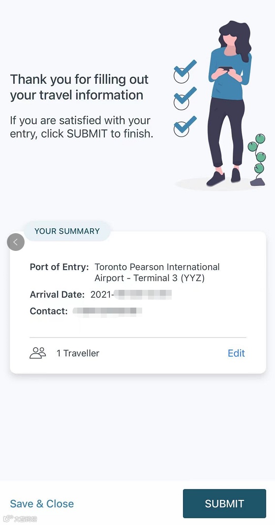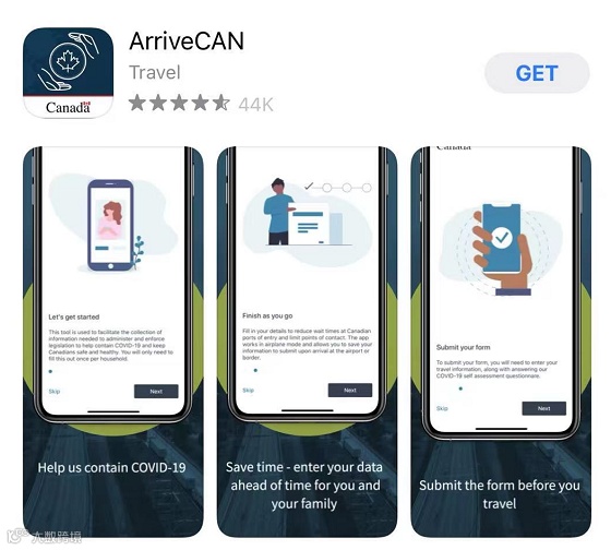 另外,所有抵达加拿大的旅行者(包括加拿大人),也都必须使用ArriveCAN来登记他们的个人信息、联系方式和旅行行程,包括隔离计划、COVID-19测试信息。