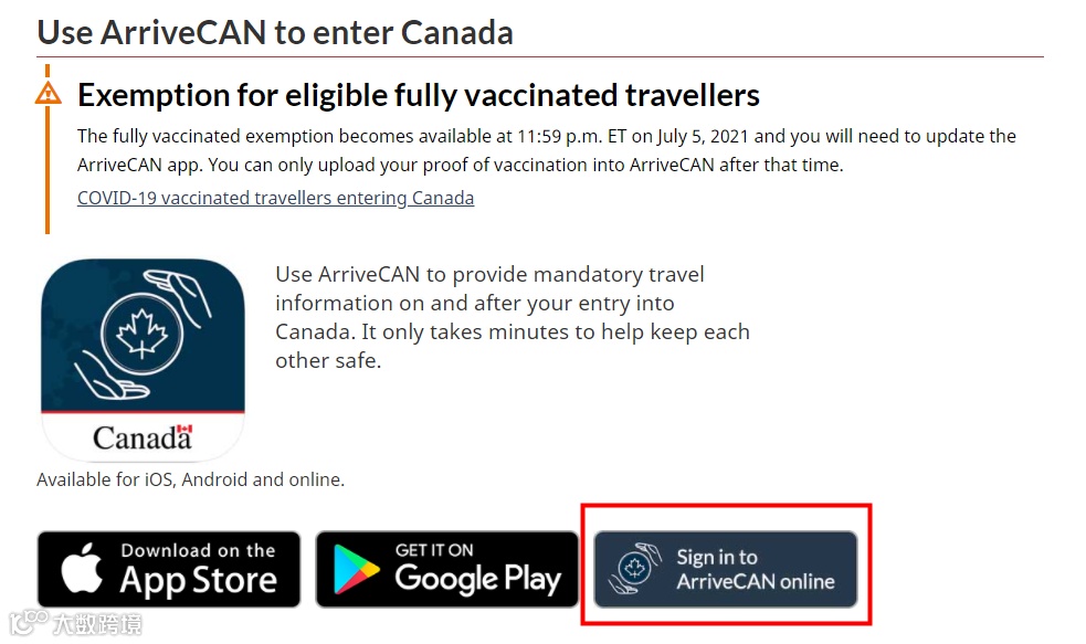 根据加拿大联邦政府早前宣布,从7月5日起,完全接种疫苗的加拿大公民、PR等指定旅行者,可以免除隔离以及抵达后8天的COVID-19测试。但是,旅行者必须在抵达前通过ArriveCAN应用程序上传疫苗证明等基本信息,以向边境人员证明自己已经完成2针的疫苗接种。