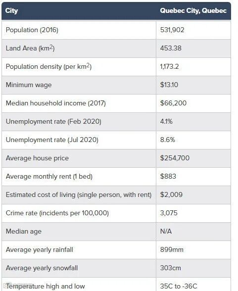 为了得出加拿大十大最佳居住地,我们考察了所有省份和地区的一些较大的城市,然后主要根据经济因素对这些城市进行排名。最后,根据这些因素,我们的加拿大前5名最佳城市是:魁北克省的魁北克市,新不伦瑞克省的蒙克顿,安大略省的汉密尔顿,新不伦瑞克省的圣约翰,和安大略省的伦敦。