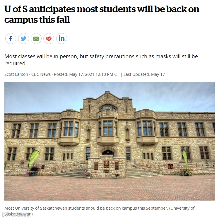 萨省大学副校长Dr. Darcy Marciniuk证实,“今年秋季绝大多数的课程都会恢复线下,大部分的学生将返校上课。