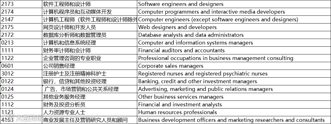 目前安省优才EE通道热门的职业列表如下,供大家参考