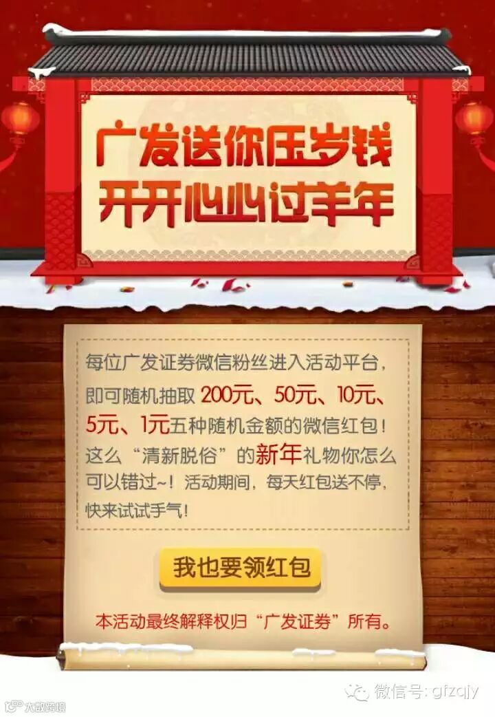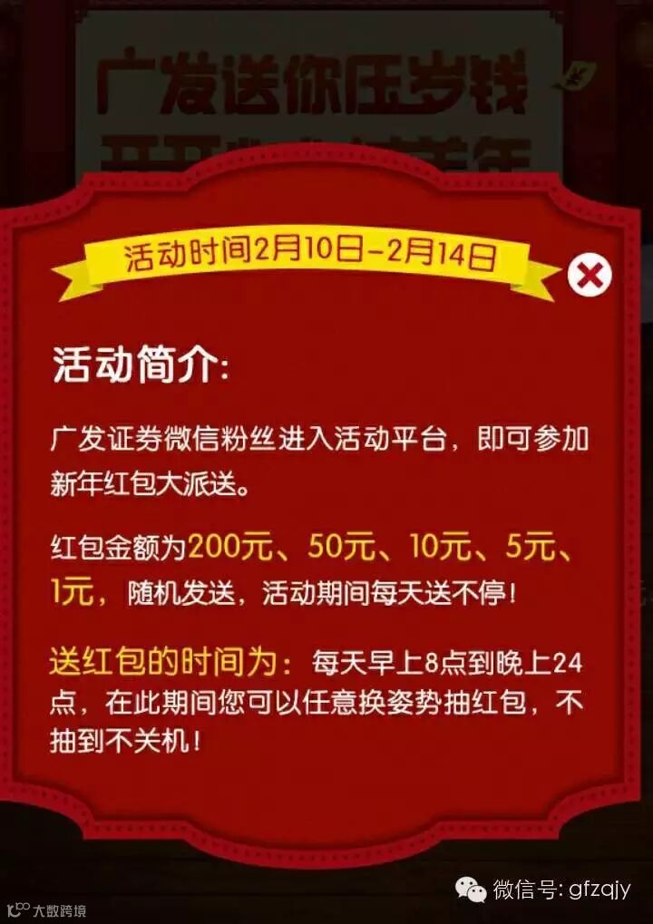 导读:广发喊你来领红包啦!今日起至情人节每天8点至24点,不抽到不关机最后,别忘了再通知您的亲朋好友喔点击底部阅读