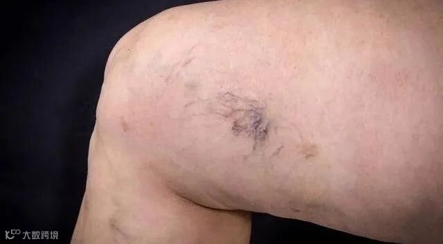 4. 血栓:部分病人可以在曲张的浅静脉内形成血栓,表现为局部红肿痛,硬块形成,疼痛影响行走。如果不及时治疗,血栓可能向上扩散或通过交通静脉向深静脉扩散,引起深静脉血栓,有危及生命的肺栓塞风险。
