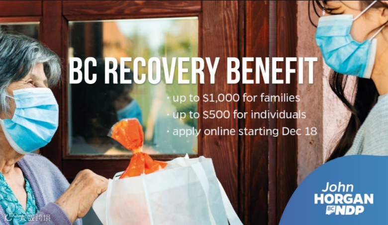 继续发放卑诗复苏福利(Recovery Benefit),向家庭及单亲家庭发放最多$1,000,并向单身人士发放最多$500。