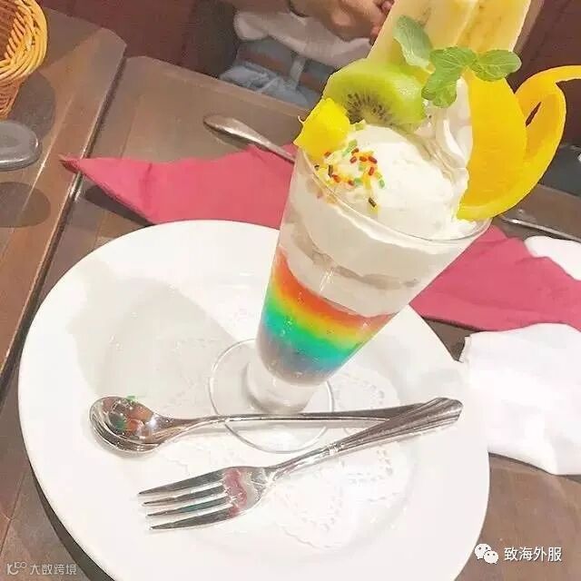 这家在台场喷泉广场里的餐厅,虽然不是甜品专门店,可是它家的彩虹甜品比餐食还高人气。