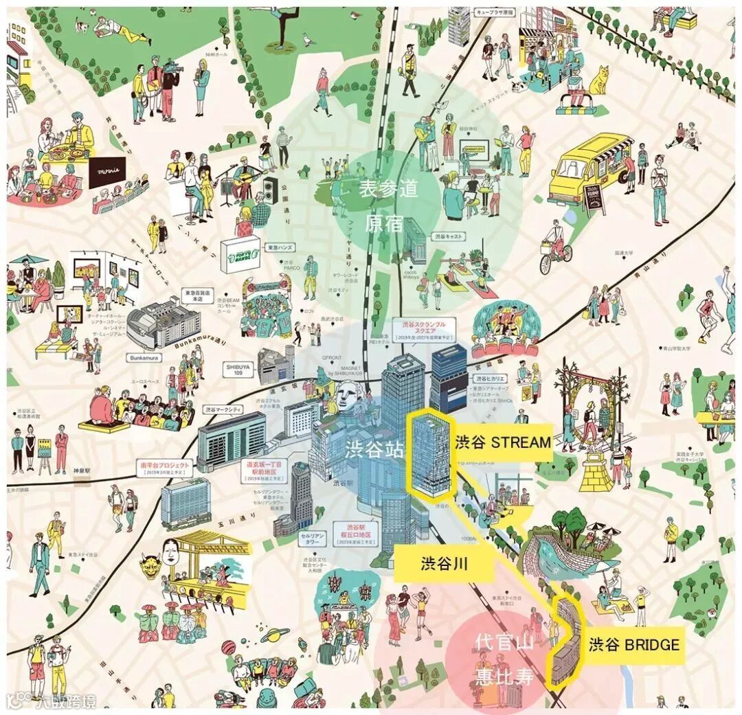 承载着原先的铁道记忆,并于涩谷周边的环节相融合,由内部建筑物延伸出步行桥,从涩谷川便可通往代官山,这沿途还用灯光设计营造出属于涩谷的街头氛围,这个年轻时尚的城市,不愧为“东京的心脏”。