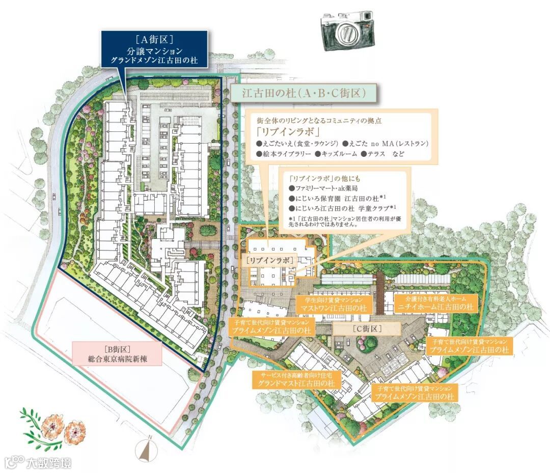 在少子化的大背景下,未来朝着“空城”、人烟稀少的方向发展,为打造多世代交流,江古田no森的项目涵盖养老院、托儿所、便利店、药店,方便人们的生活,还提供出租和分销型住宅,加强区域与区域的连接。