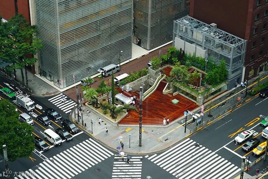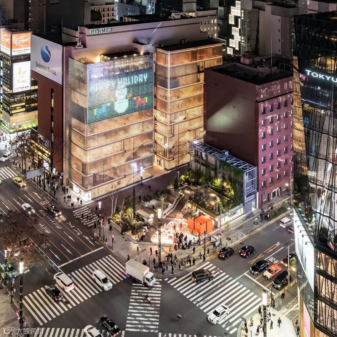 为了配合东京奥运会城市景观再造,打造了无界限的开放式空间。保留了之前大厦原本的特殊构造,一楼是绿意盎然的公园广场,地下四层Lower Park以公园为概念,包含了潮流艺术、溜冰场,游戏场,音乐表演等设施,在繁华魅惑的银座地区打造了犹如绿洲一般的公共休闲场所。