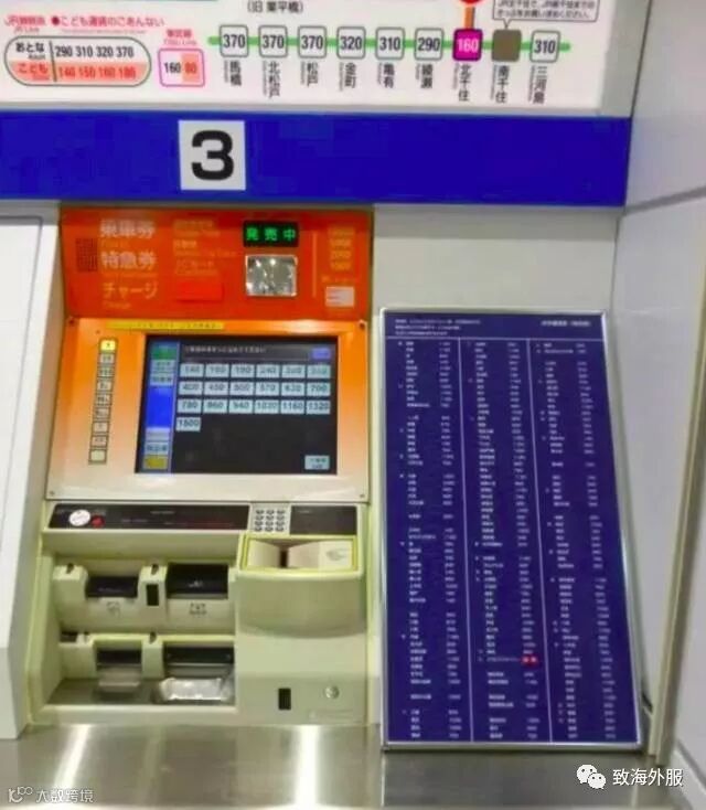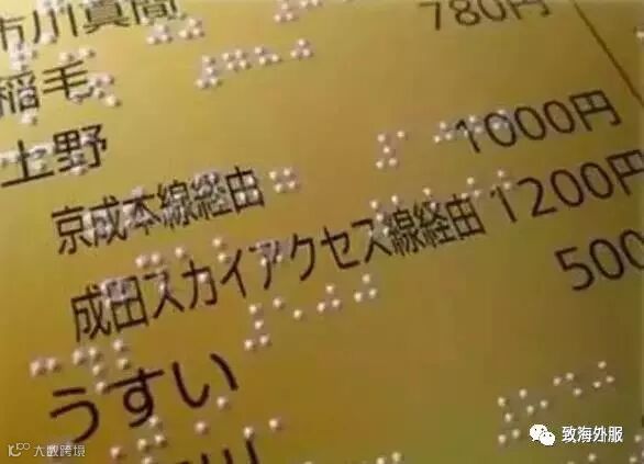 如果盲人想要做电车,也是非常方便的。车站内提供有专门的售票机器,下图右侧是盲文票价表,按下红色按钮,售票机器会出现语音提示。