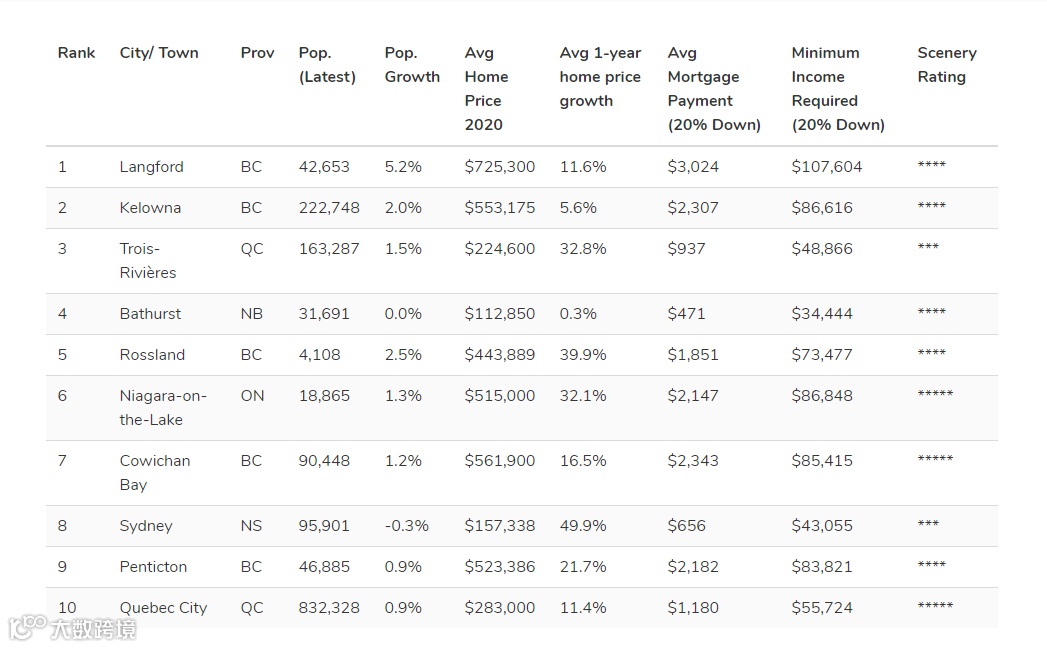 卑诗省的Langford荣登榜首,被评价为“一个极具吸引力的,规模虽小但发展迅速的西海岸城市”。