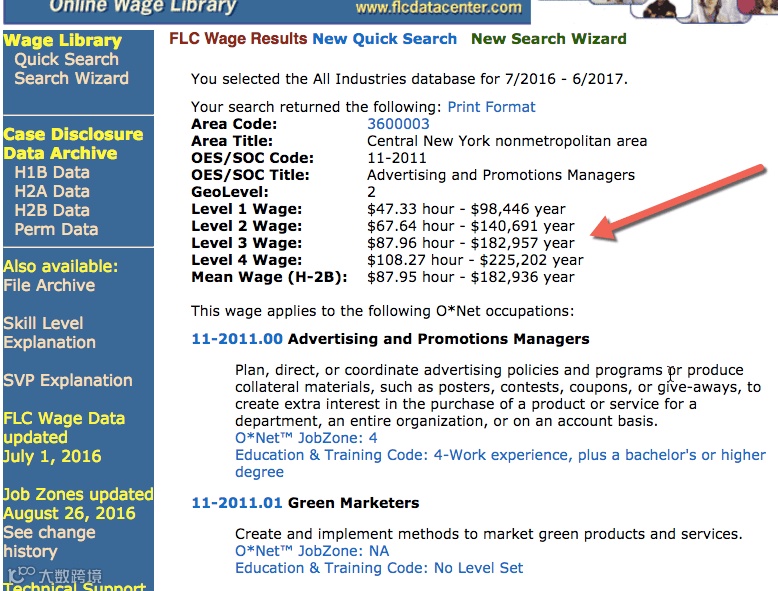 (USCIS薪资标准,将参考到劳工部公布的职业就业统计数据OES)