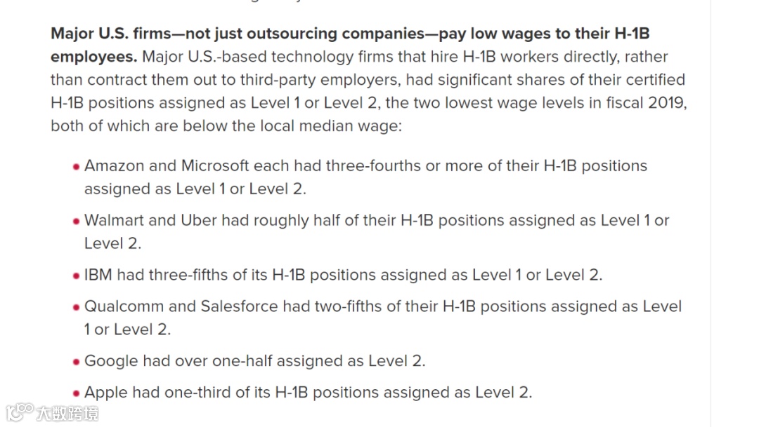 Amazon亚马逊和Microsoft微软:有3/4的H-1B职位薪资只能达到1级或2级