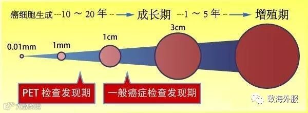 PET(Positron Emission Tomography)被称为正电子放射断层扫描术。也是一种检查癌症的方法。通常的癌细胞只有等变成一定大小才被发现。一般人在自己身体感到异样之前是很难发觉的。PET就是一个作为早期发现癌细胞的重要标志。利用癌细胞比正常细胞吸收3-8倍葡萄糖的性质,注射类似与葡萄糖的检查药(FDG),用PET进行全身摄影。于是,药物大量聚集在糖代谢旺盛的恶性肿瘤等部位, 可以作为发现癌的线索。与PET检查同时进行CT检查,能进行更高度精密的检查(PET-CT检查)。