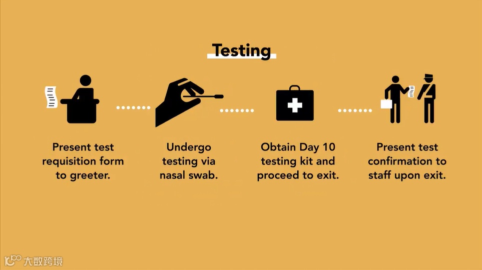 检验结果为阴性的人将可以离开酒店,回家或到达最终地点完成强制性的14天隔离期的剩余时间。