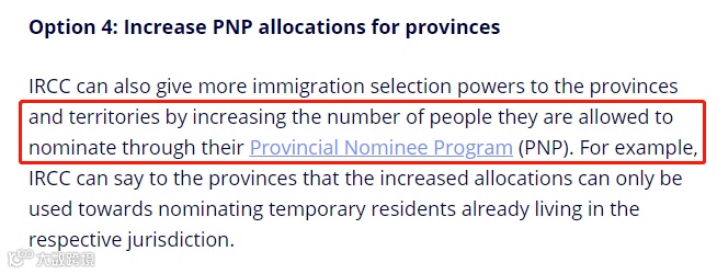 加拿大还可以通过增加省提名计划(PNP)的人数来赋予各省更多的选择权。比如,IRCC可以要求各省只能将增加的配额用于已经在省内居住的临时居民,如留学生、毕业工签持有者等。