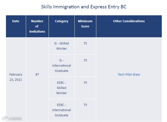 导读:加拿大当地时间 2021年2月23日,BC省移民局公布新一轮技术移民 (仅针对29个特快审批职业) 抽选结果