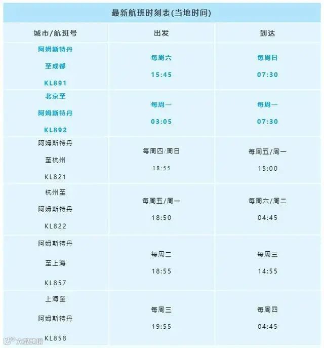 史基浦机场至成都双流国际机场、北京首都国际机场至阿姆斯特丹史基浦机场的开口程航班。
