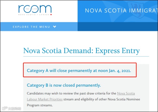只要你打开新斯科舍省的官网,在它的EE紧缺职业类项目的页面上,就会看到这样几行字:A类将于2021年1月4日关闭,而B类已经永久关闭。
