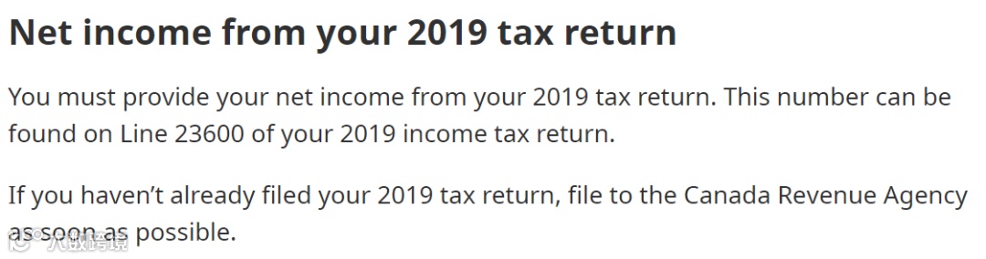 您2019年报税文件中有关净收入(net income)的数字:这个数字可以在您2019报税材料中代号为23600的栏目上找到(Line 23600)。未对自己或家庭2019年税务情况进行申报的BC省民需先完成。