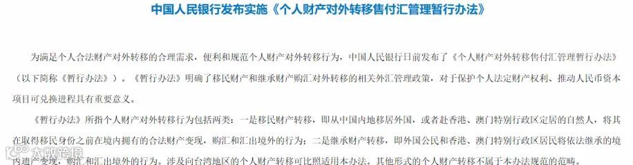 从上可知,该政策允许获得海外永久居留权的华人(即使未获得他国国籍)进行一次性大额的财产合规转移,规避“个人每年5万美金的跨境汇款”限制。