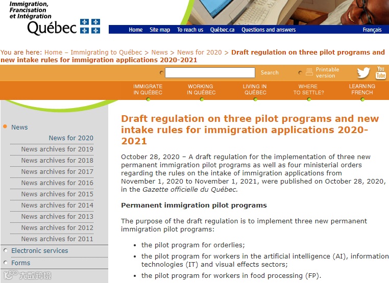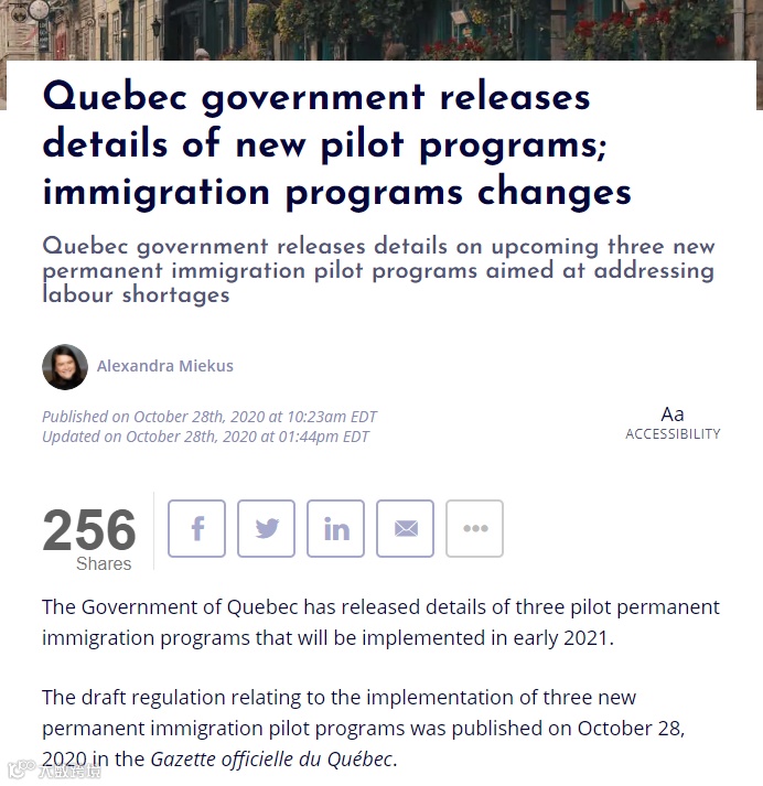 导读:当地时间10月28日,加拿大魁北克政府发布三个全新移民试点计划的详细信息,这些计划预计将在2021年初实施。