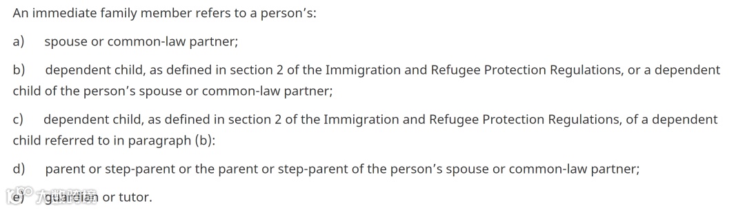 对 “直系家庭成员” 一词,加拿大政府将其定义为: