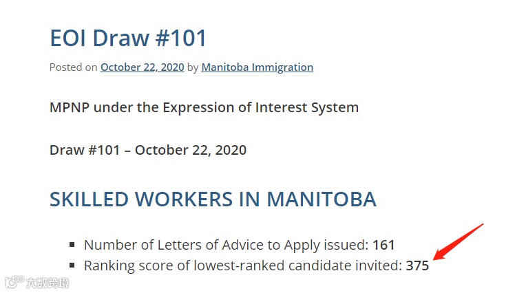 导读:曼尼托巴省在当地时间2020年10月22日公布最近一轮的EOI抽分,最值得注意的是,此次针对省内经验类候选人