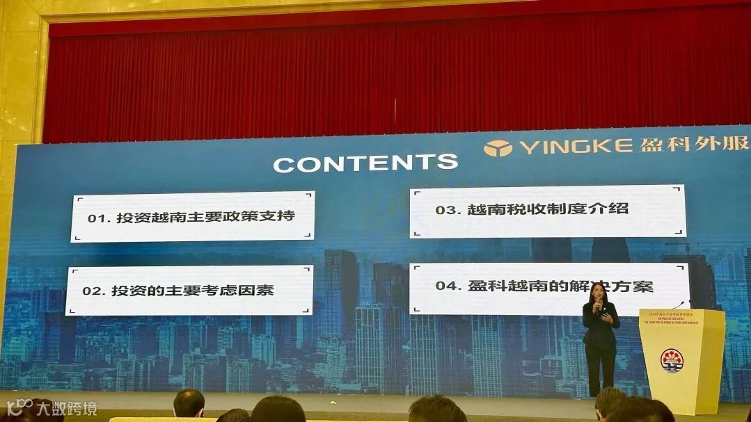 盈科外服(越南)总经理阮氏兰香女士也上台发表了重要演讲。她表示,盈科外服作为此次活动的协办方,将一如既往地为中国企业提供专业的投资咨询和服务,助力企业顺利进入越南市场。她详细介绍了盈科外服给企业在越南市场的解决方案,并分享了在越南投资的实用经验和注意事项。