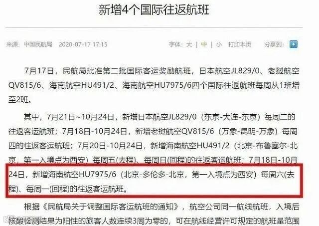 好消息!中国民航局刚刚批准了第二批国际客运奖励航班,其中包括一趟