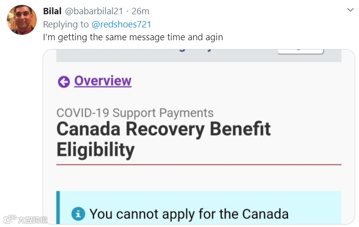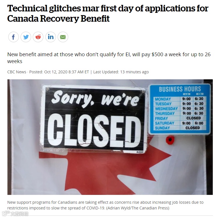 据CBC报道,周一早上,到政府网站上申领复苏福利金CRB的人似乎都遇到了技术故障。