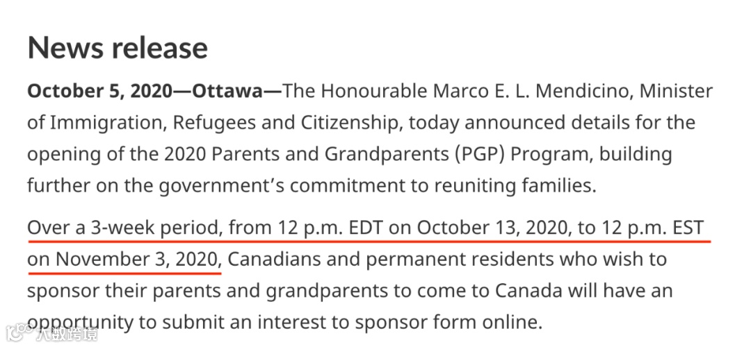 今年由于疫情影响,原定于春季开放的父母及祖父母团聚移民申请被迫搁置,直到进入10月,移民局才正式宣布了开放申请日期,定于感恩节长周末后的10月13日。