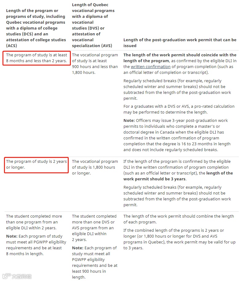 如果就读的是2年或更久的项目,毕业后可以获得3年工签。