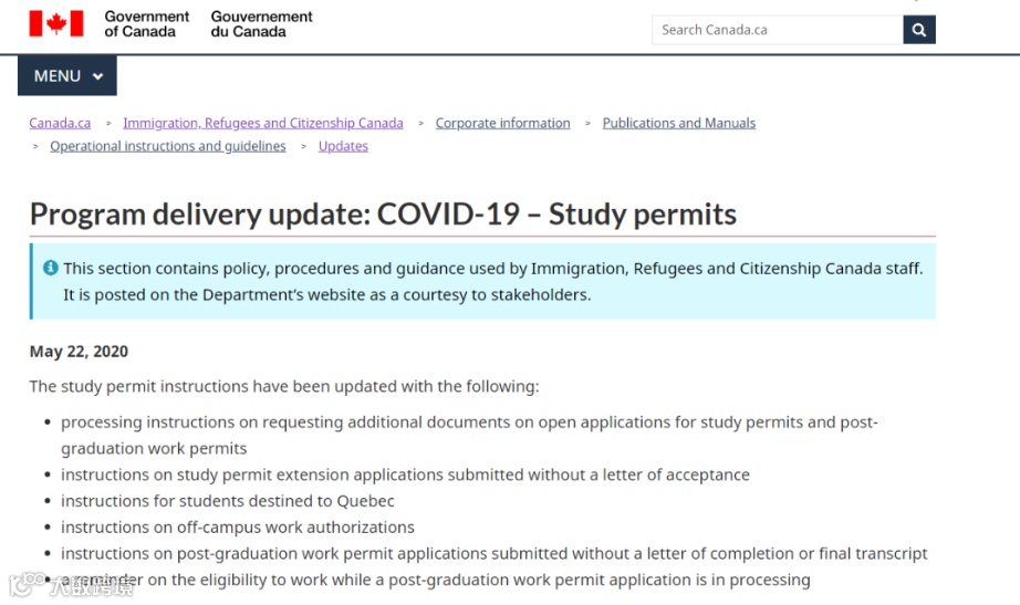 加拿大移民部在5月22日,更新了有关学签和毕业工签的临时变更。