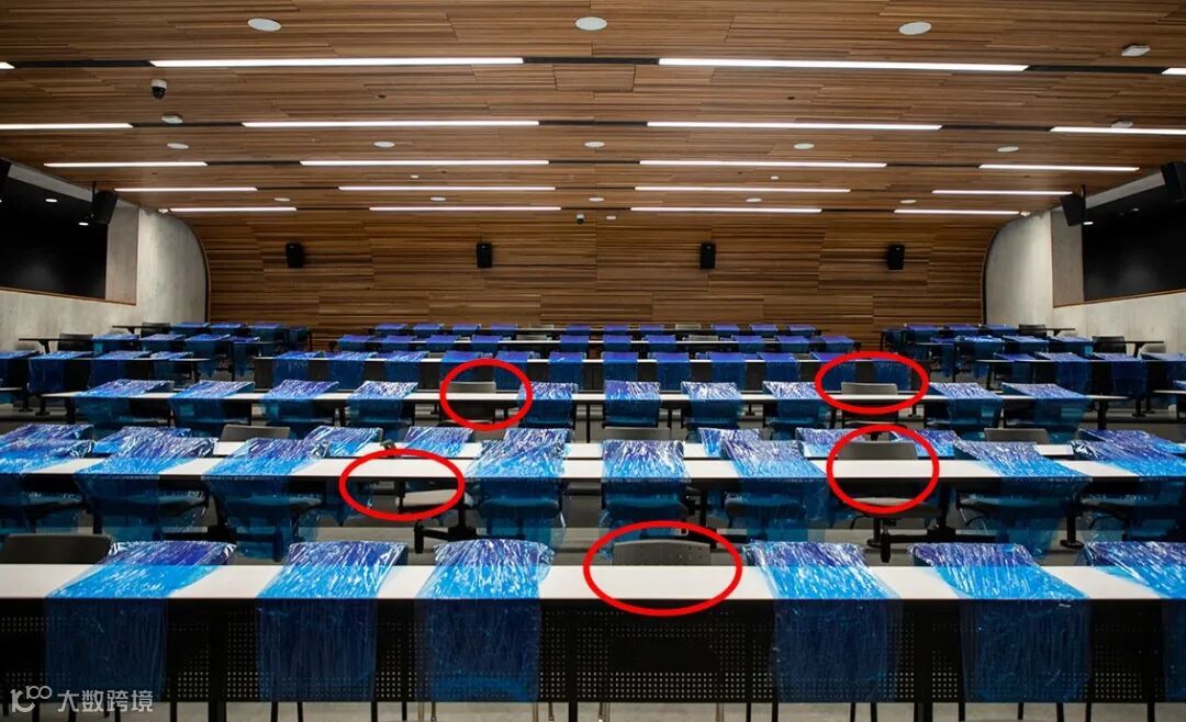 据这张图片显示,几个画红色圈的位置是能坐的位置,这样一来,学生们相互之间相隔的距离还是非常远的。