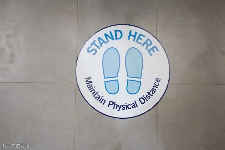 教室门口的地面上还贴有“等候”标识,为了避免学生们拥堵,并帮助分散人流。