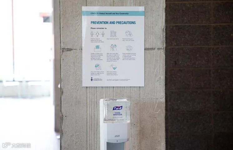 除此之外,多伦多大学的校园里还重新安置了很多免洗洗手液。↓