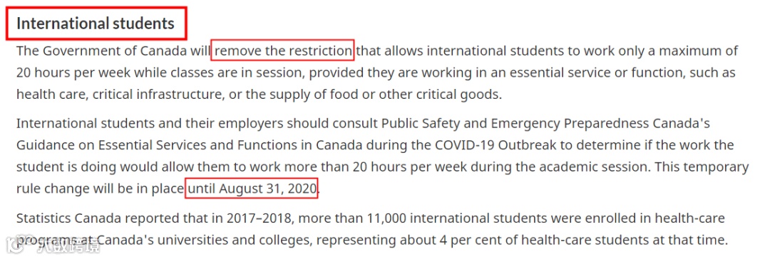 不过,针对留学生群体,加拿大政府另外提出了一项措施:取消工作时间限制。