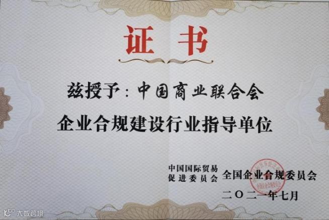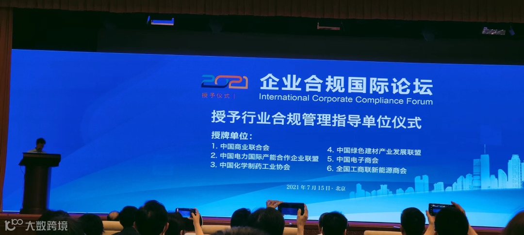 2021年7月,中国国际贸易促进委员会商事法律服务中心授予中国商业联合会等 6 家商协会“企业合规建设行业指导单位”,构筑行业合规准入机制。