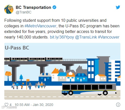 于是BC省政府决定,给本省的U-Pass计划续命5年。也就是说,从2020年开始,直到2025年,BC省的大学生们还是可以享受到BC省公共交通的优惠价格。